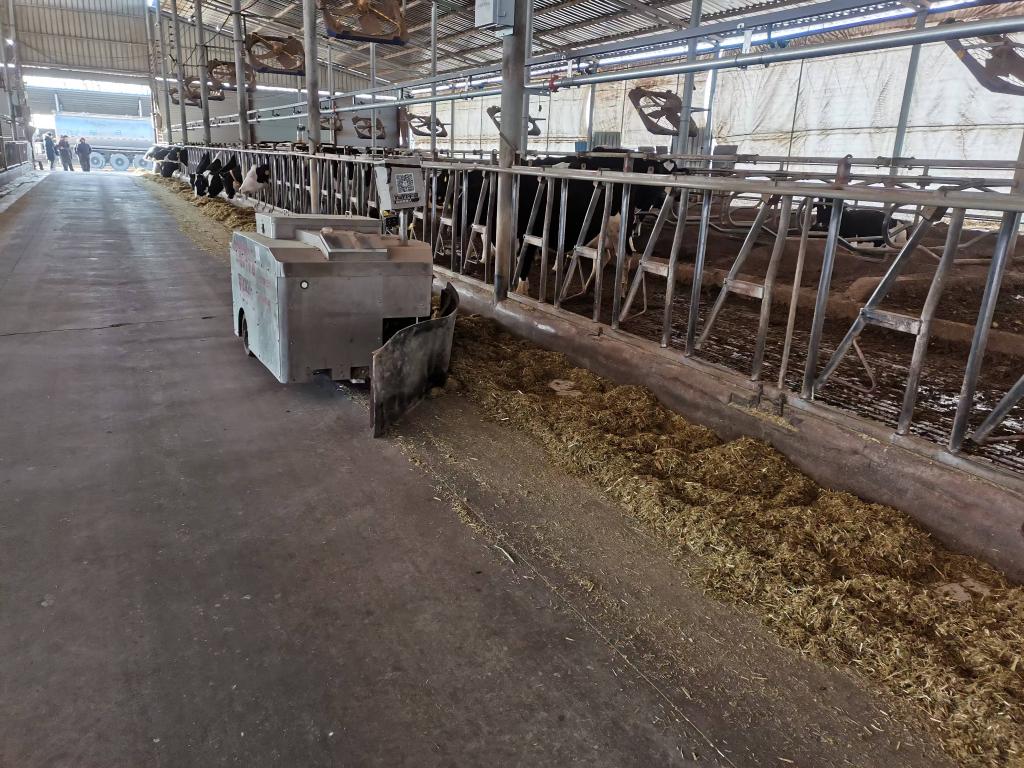 “以前我们需要几名工人24小时轮班推料。现在有机器人帮忙,可以实现昼夜工作。不仅节约了人工成本,奶牛产奶量也有提高。”钱雪飞说。