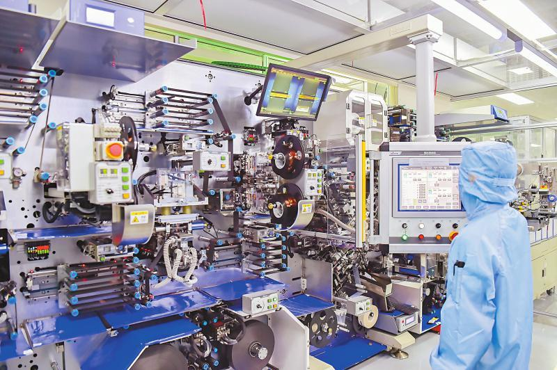 长虹旗下四川长虹新能源科技股份有限公司(以下简称长虹新能源)生产车间内,智能机械臂和AGV无人搬运车展开“接力”,将新鲜“出炉”的电池送往老化箱内。