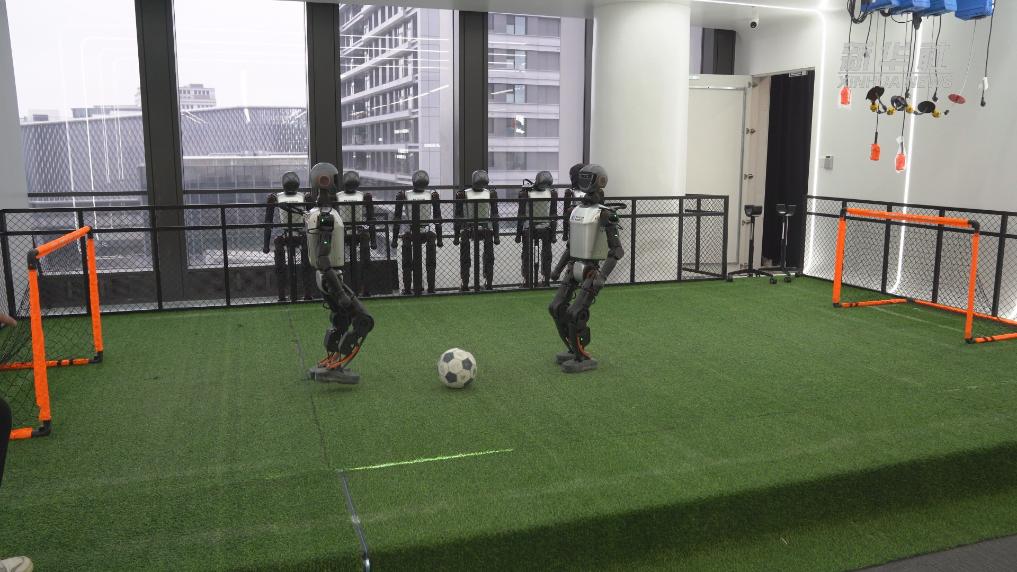 全国首个异构人形机器人训练场位于上海张江的国家地方共建人形机器人创新中心,百余台异构人形机器人和类人形机器人在此训练。