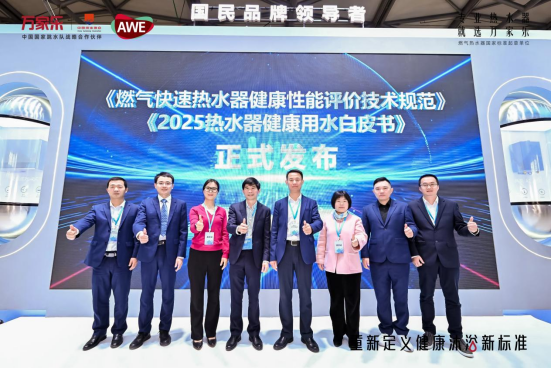 在技术标准领域,万家乐联合中国家用电器研究院、同济大学、武汉大学和全国家用电器工业信息中心共同发布了《2025热水器健康用水白皮书》,深入分析了热水器行业发展趋势及热水器健康技术现状,对热水器健康用水提出了更多的可能性,为行业发展探索出全新方向。同步发布的《燃气快速热水器健康性能评价技术规范》,为燃气热水器的健康性能提供了科学的评价标准,也为热水器行业健康赛道的发展描绘出一条有迹可循的路径,更为用户健康生活提供了更可靠的保障。