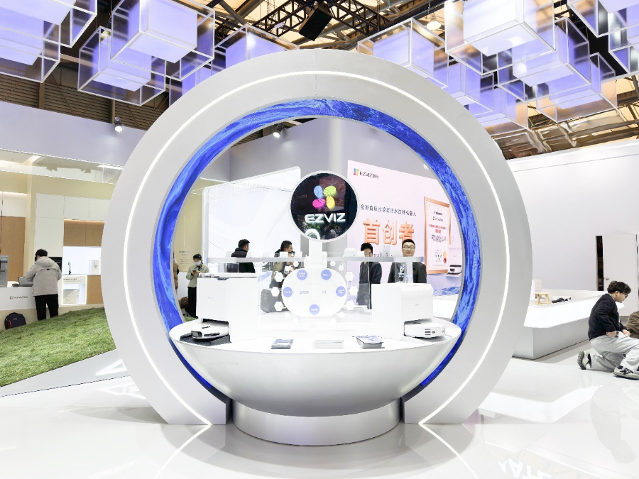 萤石以“AI视界,更‘净’一步”为主题,通过智慧客厅、智慧厨房、智慧商用空间三大场景,向参展观众展现了“AI+视觉”是如何让清洁机器人“看得清看得懂”。