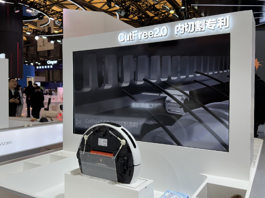 在智慧客厅体验区,萤石RS20 Pro Ultra的表现值得称赞。在避障能力设计上,RS20 Pro Ultra不仅能识别出宠物、拖鞋,各种垃圾也不在话下,而在核心的清洁能力方面也有很多行业创新,Cutfree2.0内切割专利能主动切断缠绕的超长头发。