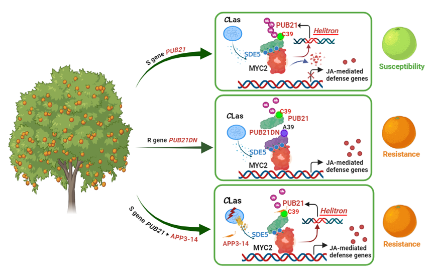 柑橘黄龙病抗性调控机制。(中国科学院微生物研究所供图)
