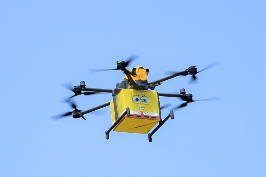 市民游客在美团无人机与海绵宝宝联名活动点围观打卡(资料图)