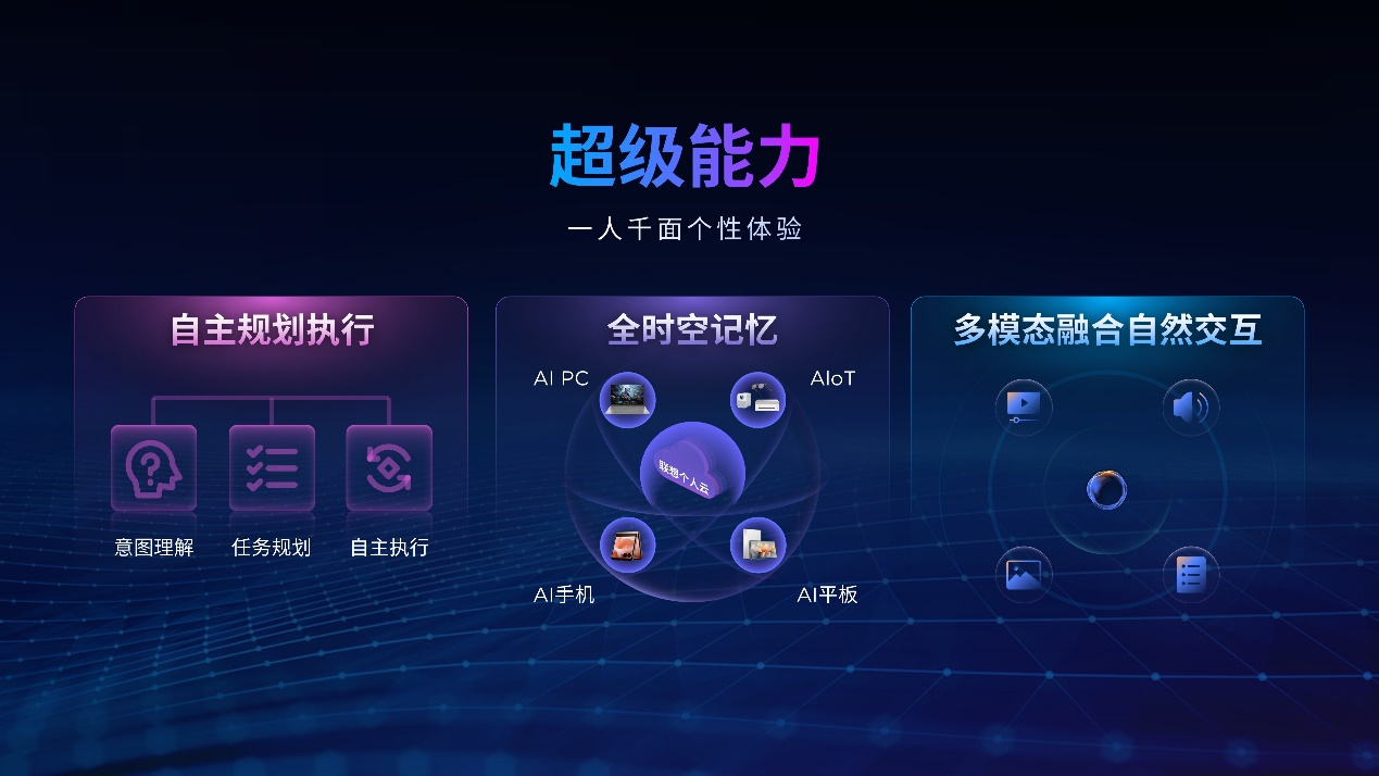 天禧个人超级智能体具备独特的“超级能力”。首先,其深度融合语音、文本、图片及视觉交互能力,打破传统单一交互壁垒;在此基础上,其全时空记忆系统可同步整合设备端与云端知识库,实现跨场景的即时检索与智能调用;更进一步的是,其具备自主规划执行能力,在办公文档处理、学习进度管理、生活事务安排等场景中能够主动分解任务、协调资源,使天禧个人超级智能体真正成为超级智能助理。