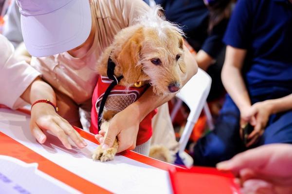 狗狗代表在“宠物友好出行公约”上按下爪印
