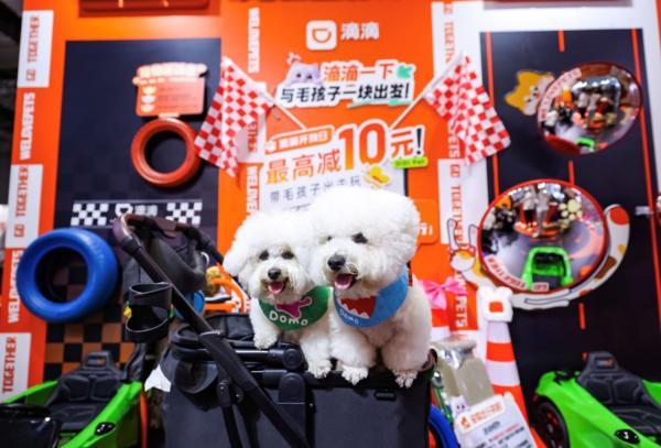 毛孩子们在滴滴展区打卡留影