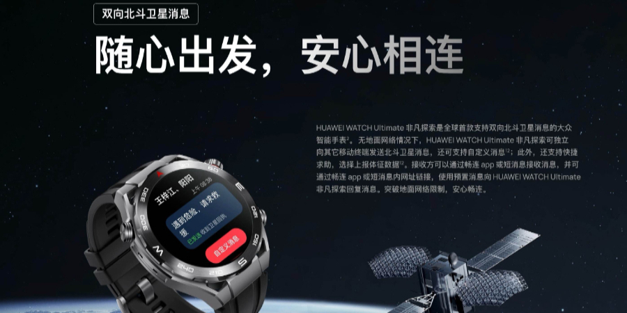 华为WATCH Ultimate非凡探索支持双向北斗卫星消息,这一功能在地面无网络覆盖的情况下显得尤为重要。在珠峰这样的无人区,张京可以通过手表发送北斗卫星消息,向外界传递自己的位置和身体状况,大大增加了挑战的安全性。