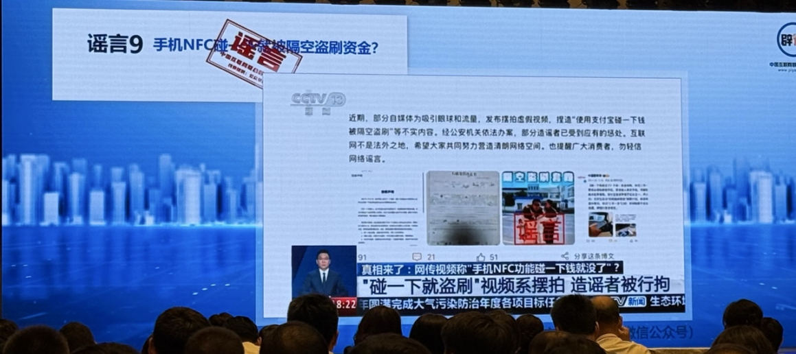 6月11日,2025年中国网络文明大会网络辟谣分论坛在合肥举行。论坛发布了《经济金融领域年度网络辟谣榜》,其中,“直播间荐股‘精准涨停’”、“手机NFC碰一下就被隔空盗刷资金”等典型案例被列为经济金融领域年度谣言。相关部门表示,将重拳惩治网上涉企侵权乱象,切实维护市场秩序和各类市场主体的合法权益。