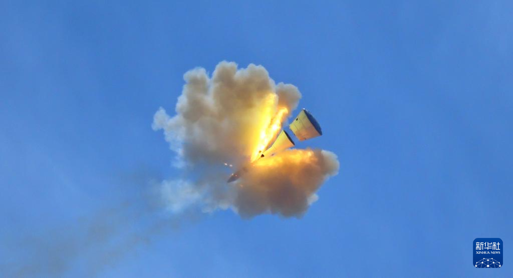6月17日,我国在酒泉卫星发射中心成功组织实施梦舟载人飞船零高度逃逸飞行试验,标志着我国载人月球探测工程研制工作取得新的重要突破。新华社发(王衡 摄)