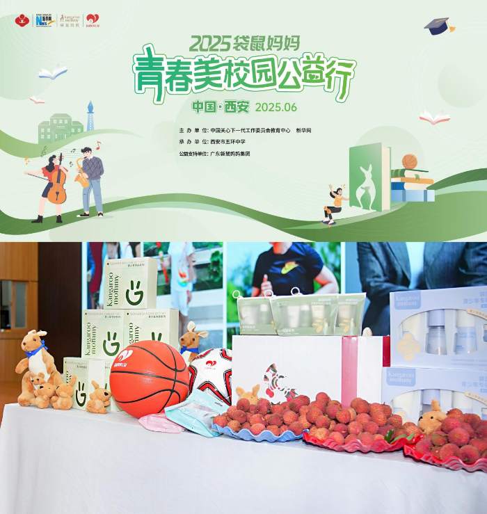 此外,西安本土爱心企业“陕西译美实业集团公司”也重视孩子们的成长,捐赠了精心准备的“袋鼠妈妈青少年焕亮礼盒”。这份礼盒聚焦青少年肌肤健康,以科学的护肤理念为指导,旨在帮助学子们在专注学业的同时,科学有效地呵护青春肌肤,保持由内而外的健康活力与自信光彩,绽放青春最美的姿态。