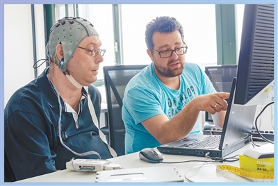 在瑞士洛桑,科学家在进行脑机接口实验。 EThamPhoto(影像中国)
