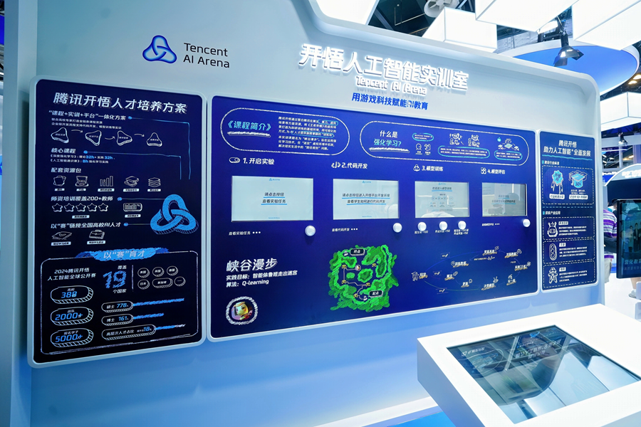 AI教育平台通过联合政校企院各界,推动人工智能教育与科研的创新。作为腾讯自主研发的AI多智能体与复杂决策开放研究平台,腾讯开悟将公司积累的多元算法框架、丰富研究场景等优势向学术界开放,为高校教师和学生提供一站式教学管理工具和实践开发环境。近期,腾讯开悟推出了涵盖AI通识课和AI强化学习专业课的全链路教学资源,面向全球高校公益开放。此外,腾讯开悟还将联合Robotics X实验室推出具身智能相关课程,致力于为高校构建前沿课程体系。