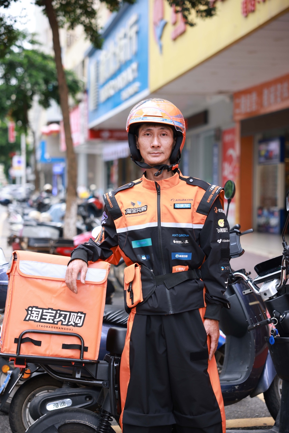 (图说:8月19日,吕炜权收到了淘宝闪购全国首套荣誉骑士制服。)