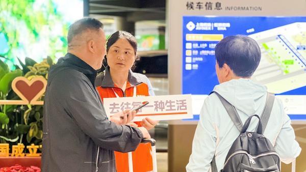 “十一”黄金周期间,为帮助用户在复杂的环境中快速找到车辆、更快上车,滴滴在北京、上海、成都、广州、深圳等全国超100个机场、火车站,设置“网约车引导员”,为用户提供路线指引、叫车流程讲解、快速找到上车点等服务,用户也可通过滴滴App内步行引导找到上车点。截至10月6日,“网约车引导员”已累计为游客服务超51万次。