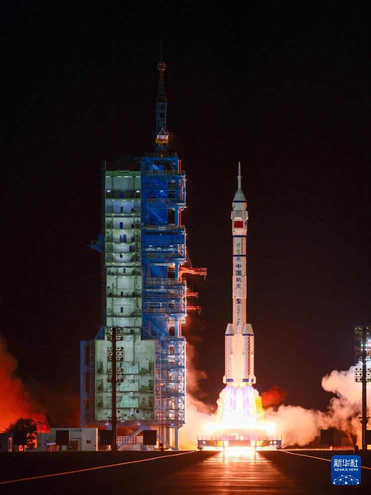 10月31日晚,搭载神舟二十一号载人飞船的长征二号F遥二十一运载火箭在酒泉卫星发射中心点火发射。新华社发(汪江波 摄)