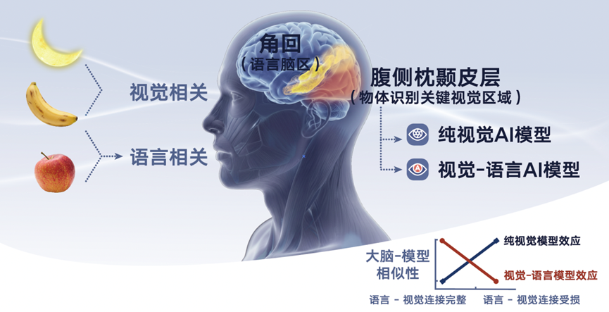 朱毅鑫表示,这项研究的意义不仅在于AI帮助我们理解大脑,更在于大脑反过来为未来AI的前沿探索与发展提供了方向。“我们发现,语言在大脑视觉系统中扮演了组织和调节的角色。”他举例,当前大模型学“苹果”概念需海量带框图像,而人类教幼儿仅需一句“看,这是苹果”,朱毅鑫说,“这启发我们思考:真正的智能,也许需要像人脑一样——让语言去统筹感知、记忆和推理,而不是简单地并列处理多种模态。”毕彦超进一步指出:“脑科学与人工智能不是两条平行线,而是一面镜子。我们借助AI理解人脑,也让人脑的认知实验研究为AI发展照亮方向。”