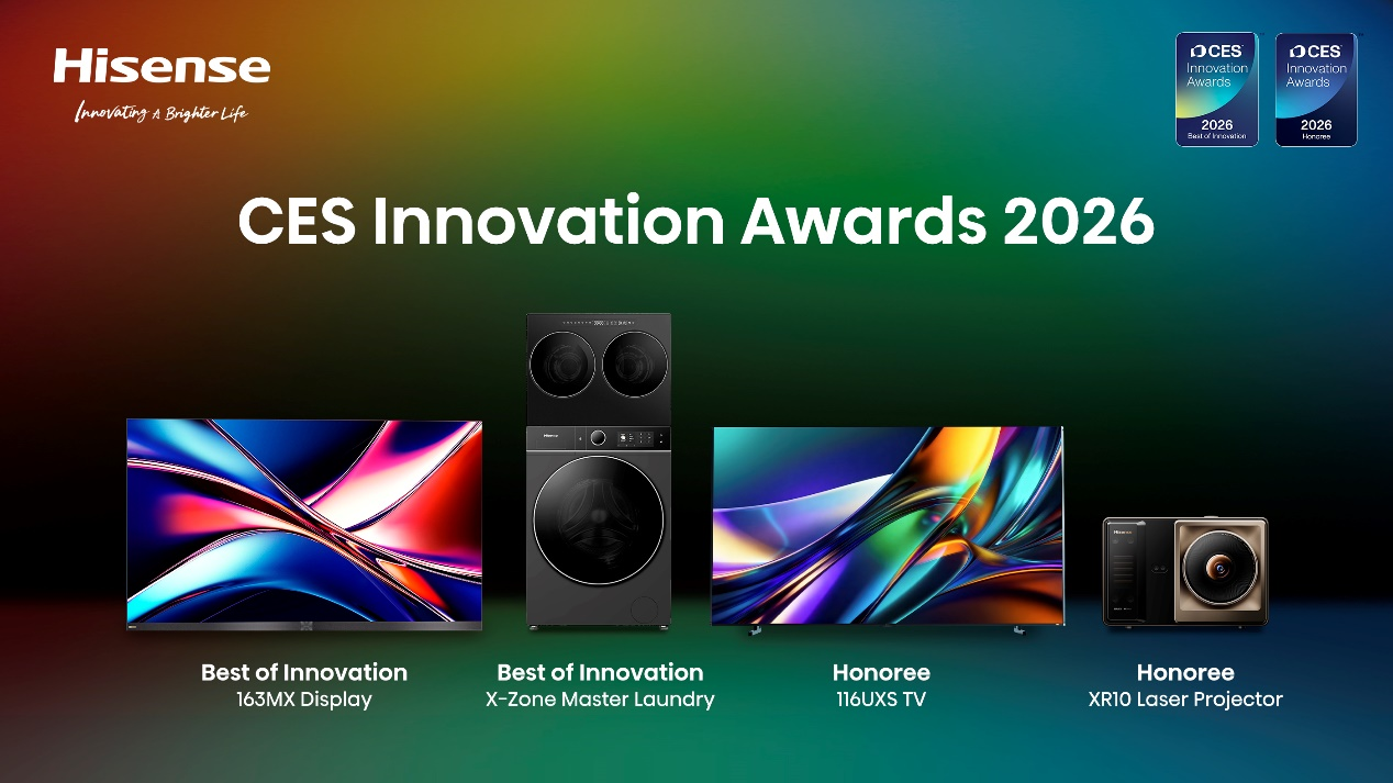 在CES2026国际消费电子展上,海信凭借一系列突破性前沿技术创新,获得四项CES创新奖项。从全新一代RGB-Mini LED显示技术到四基色Micro LED,再到4合1热泵洗烘一体机,海信持续以首创技术推动行业进步。作为2026年世界杯官方赞助商,海信更在展会期间推出多款世界杯定制新品,用尖端科技点燃每一份热爱。