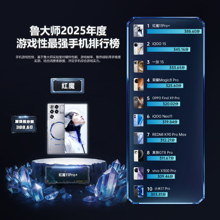 红魔 11Pro+同时摘得“2025年度游戏性最强手机”殊荣。性能只是起点,真正的“游戏旗舰”更看重功能体系:从丰富模式到外设生态,从沉浸体验到满帧稳定,红魔用一整套电竞向产品逻辑,把手游体验做成专业级装备。