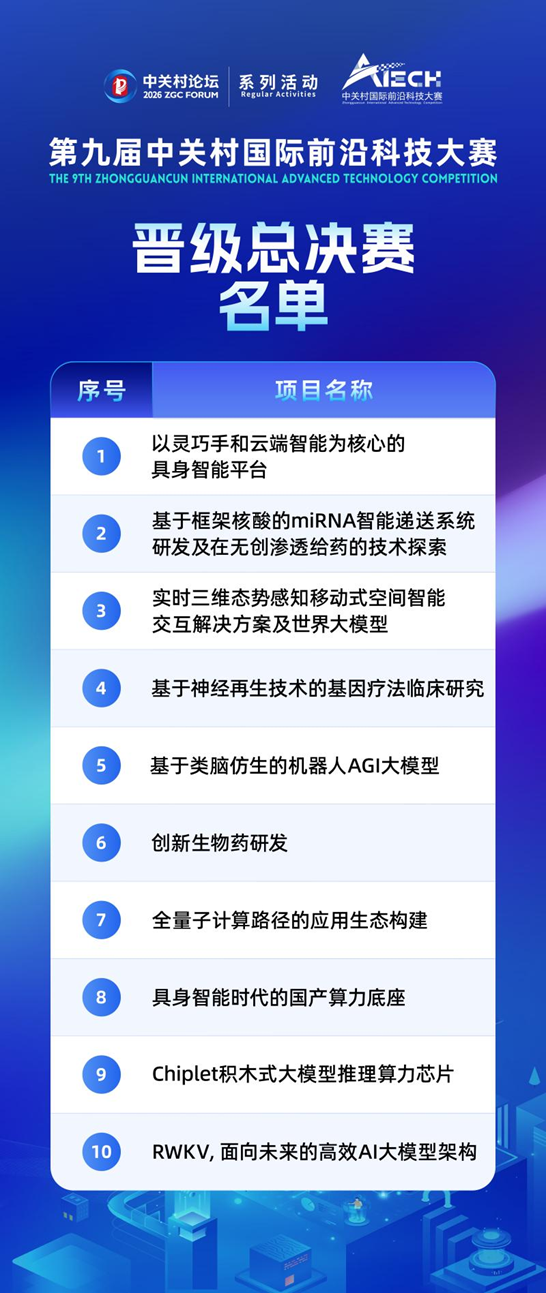 第九届中关村国际前沿科技大赛半决赛结果揭晓
