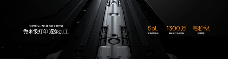 “新一代钛合金天穹铰链”率先打破传统精密加工的极限。铰链采用仿生对称四轴结构,相较传统三轴铰链,扭力提升20%的同时,让铰链表面起伏从0.18mm降至0.1mm,支撑面更广、受力更均匀,开合手感丝滑如一。但0.1mm的起伏依然不够,OPPO追求的是极致的平整。为此,OPPO开创性地将芯片领域的精密加工技术应用于铰链制造,带来芯片级高分子3D打印技术,让铰链中板平整度至高提升75%,将微观天堑化为坦途。OPPO更打造了专为平整而生的产线,让每一台Find N6的铰链都拥有极致统一的平整表现。