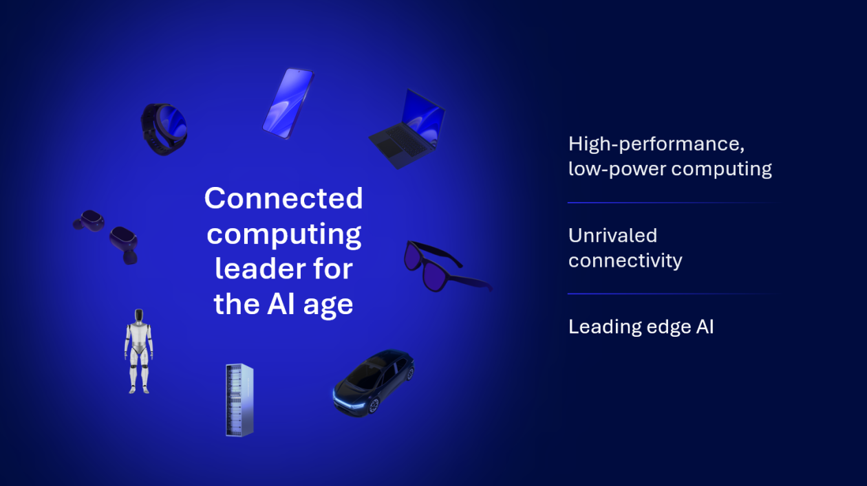 在过去12个月中,AI与生成式AI以前所未有的速度发展。高效的AI推理正在驱动数据中心领域的新一轮增长。与此同时,AI推理与微调(fine tuning)正越来越多地在终端侧展开——从智能手机、PC,到智能可穿戴设备和汽车,再到工业机器、机器人与互联基础设施,智能化不断提升。