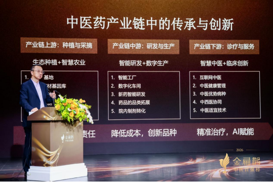 阿里健康副总裁、小鹿中医CEO陈志宇表示,AI正深刻改变患者就医决策、医生工作方式与健康管理模式,AI在连接、效率、信任三大环节优势显著,核心技术是医疗大模型“智能中枢”。小鹿中医通过AI入口整合、数字化医馆服务、金扁鹊榜单建设,让优质中医资源高效触达患者,为用户提供更便捷、精准的中医服务,将助力中医行业焕发全新生命力。