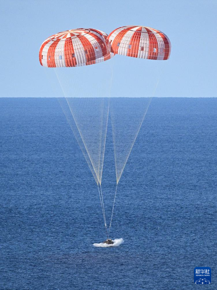 4月10日,执行美国“阿耳忒弥斯2号”载人绕月飞行任务的“猎户座”飞船溅落在加利福尼亚州圣迭戈附近海域。新华社发(美国国家航空航天局供图/乔希·巴尔卡塞尔摄)