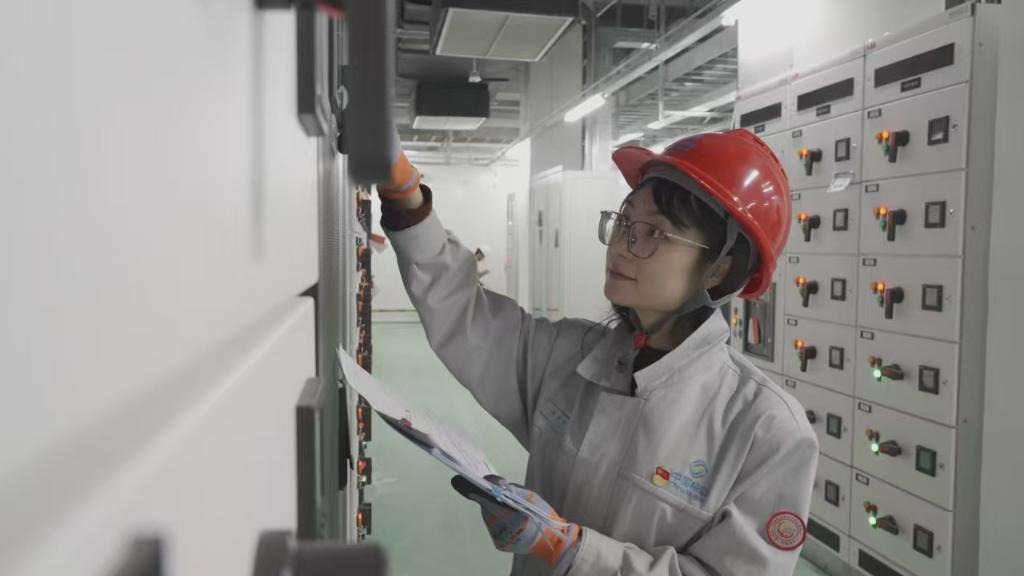 中国移动呼和浩特数据中心基础设施网络运维工程师侯晓雯正在对数据中心供配电系统进行日常运维。(受访者供图)