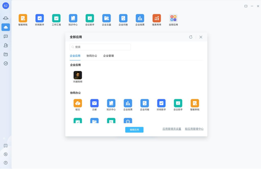 第一是统一工作台,打造企业级集中办公入口,集成高频应用、云盘、审批等模块,支持企业个性化配置,实现工作事项一键直达。