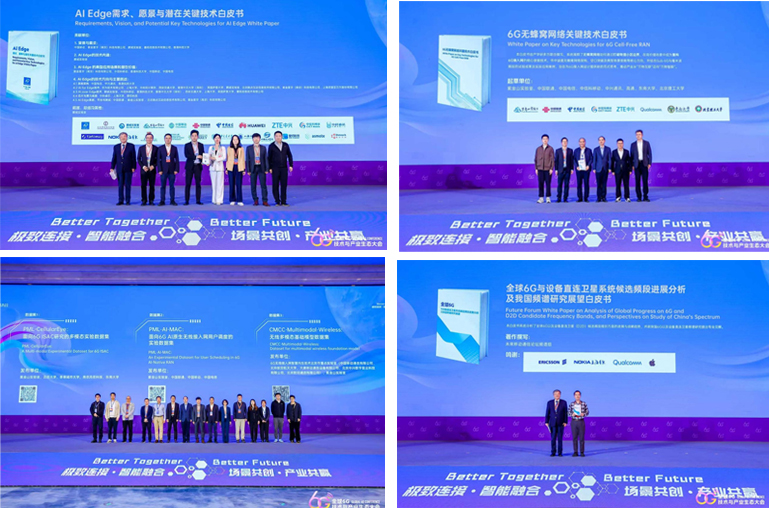 此外,围绕关键技术方向与产业实践,论坛还发布了一系列白皮书与数据集成果。《AI Edge需求、愿景与潜在关键技术白皮书》对AI Edge技术体系进行了系统性梳理,为相关技术研究与产业落地提供参考。《全球6G与设备直连卫星系统候选频段进展分析及我国频谱研究展望白皮书》系统分析了全球候选频段规划进展,并结合我国实际提出了前瞻性研究建议。