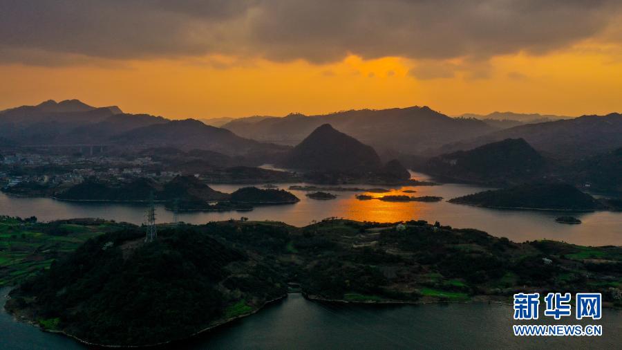 初春时节,贵州省贵阳市阿哈湖国家湿地公园色彩斑斓,景色怡人。