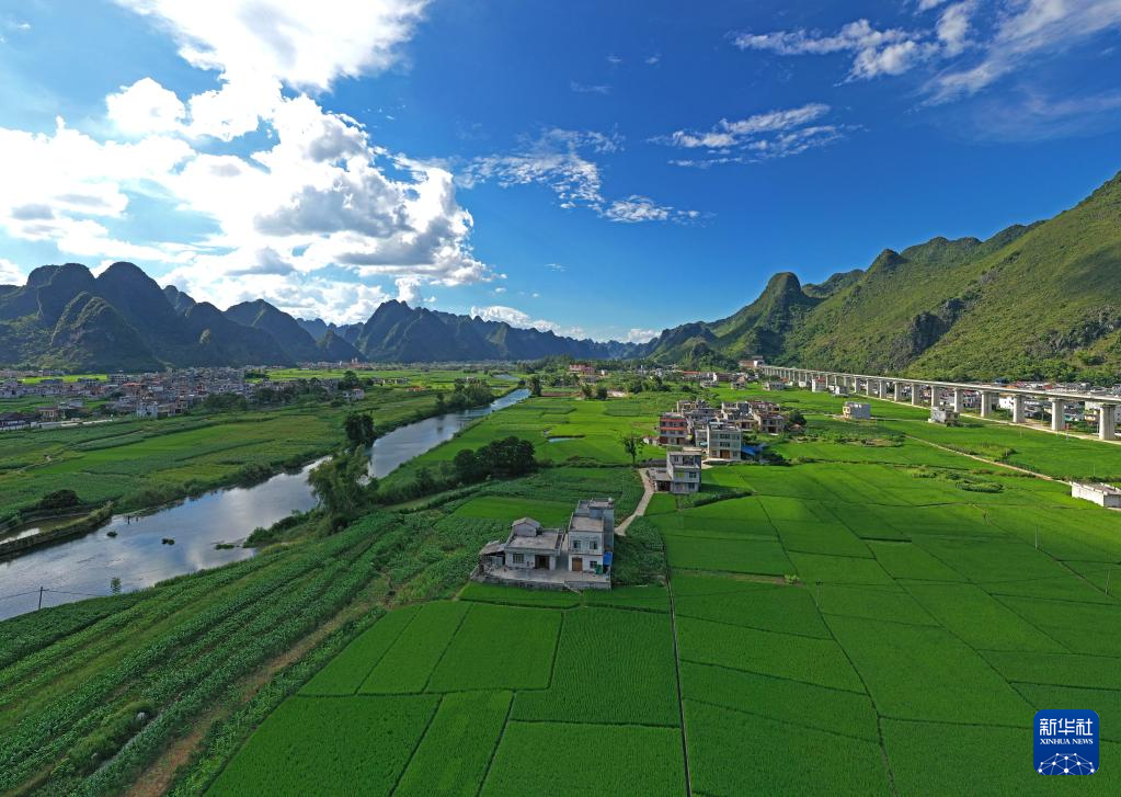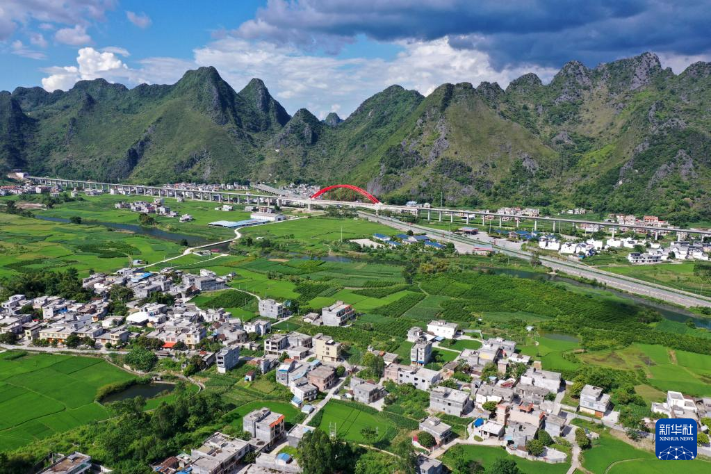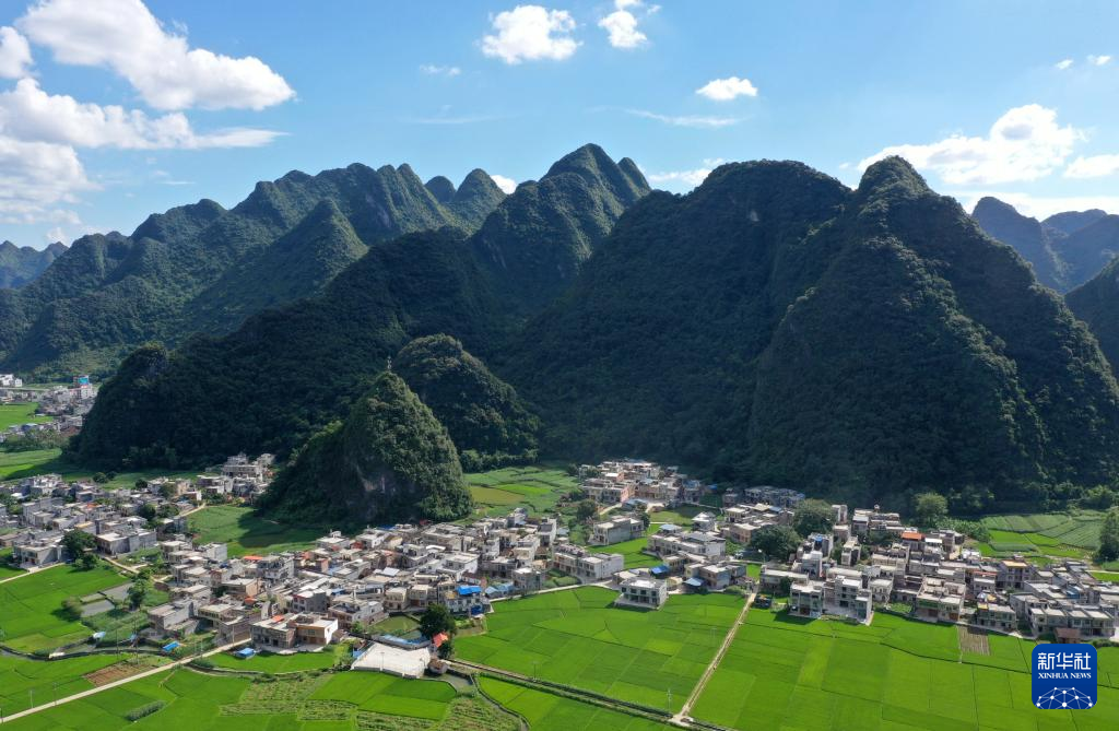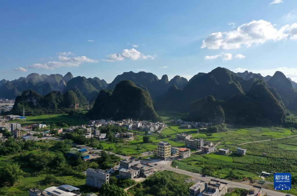 这是广西都安瑶族自治县高岭镇境内的乡村风貌(8月31日摄,无人机照片)。 近年来,广西都安瑶族自治县不断加大农村发展力度,基础设施不断完善,生态环境不断优化,村容村貌不断改观,人居环境不断改善,已经实现全面脱贫的乡村,风貌日新月异,步步走向振兴。 新华社记者 周华 摄