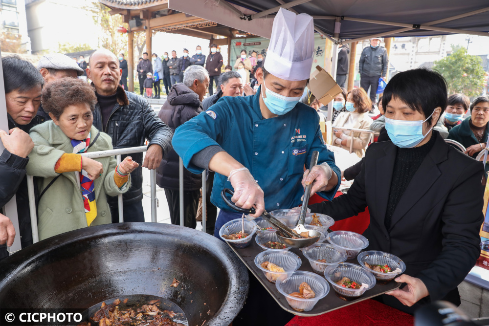 2021年12月8日,浙江省湖州市德清县新市古镇迎来一年一度的羊肉黄酒节。香喷喷的羊肉和本土酿造的黄酒摆上桌,引人争相品尝。自1997年举办首届至今,羊肉黄酒节这一民俗文化活动已经传承了25个年头,备受新市居民和游客的喜爱。