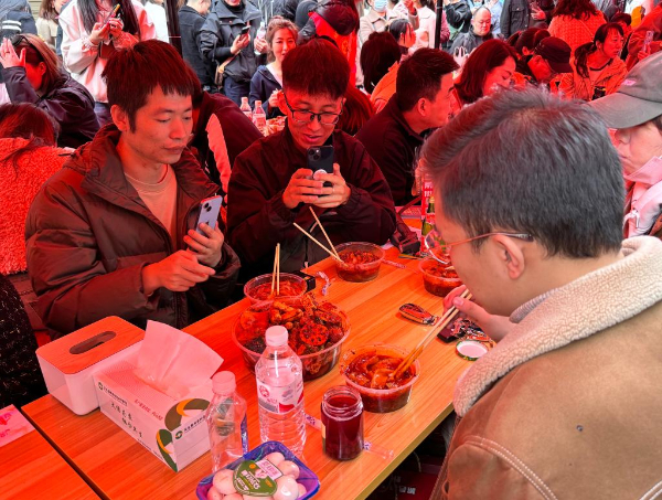 新华社兰州3月17日电(记者王紫轩、文静)街巷中,天南地北的人们或坐或立地排成长队;小院里,高举的串串“捧花”在摊点前勾勒出“鲜香”的春色。路过的本地人受宠若惊地感叹:“上次天水来这么多人,还是诸葛亮北伐收服姜维的时候!”