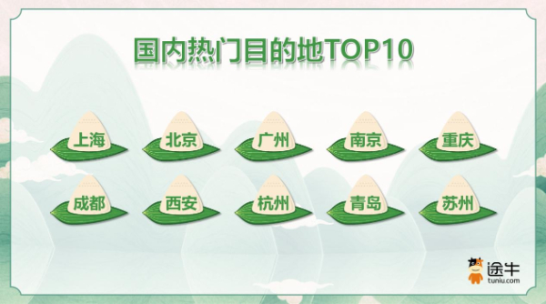 途牛旅游网数据报告显示,这个端午节假期,本地游和周边游成为了更多游客的优选方案,出游人次占比达到了49%。国内目的地中,上海、北京、广州、南京、重庆、成都、西安、杭州、青岛、苏州等目的地是端午假期更为热门的旅游目的地。京津冀、长三角、珠三角以及成渝城市群“1-2小时交通圈”的出游需求尤为旺盛。