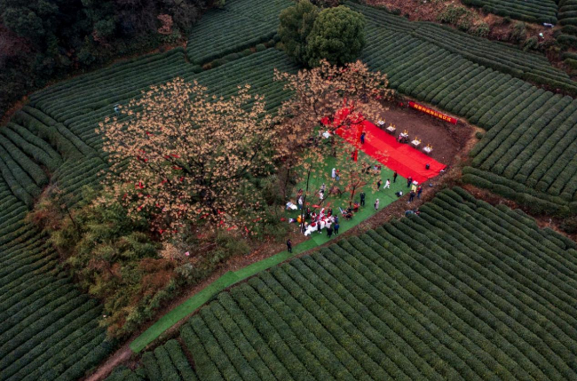 “在古代,杭州茶村的过年习俗会与城里不太一样。”活动承办方杭州何家村乡村发展有限公司负责人江素琴介绍,比如在何家村,从腊月二十六、七开始,家家户户就开始走街串门,互道欣喜,并会在茶田里举办祈福活动,为茶而生,以茶为尊,因茶有福。