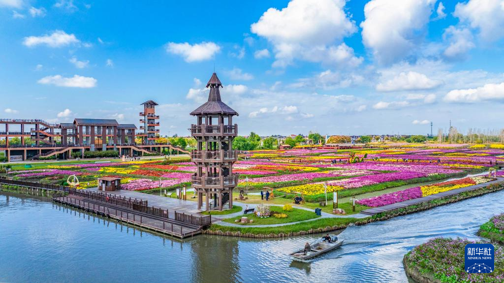 11月2日,游客在江苏省兴化市千垛景区赏菊游玩(无人机照片)。