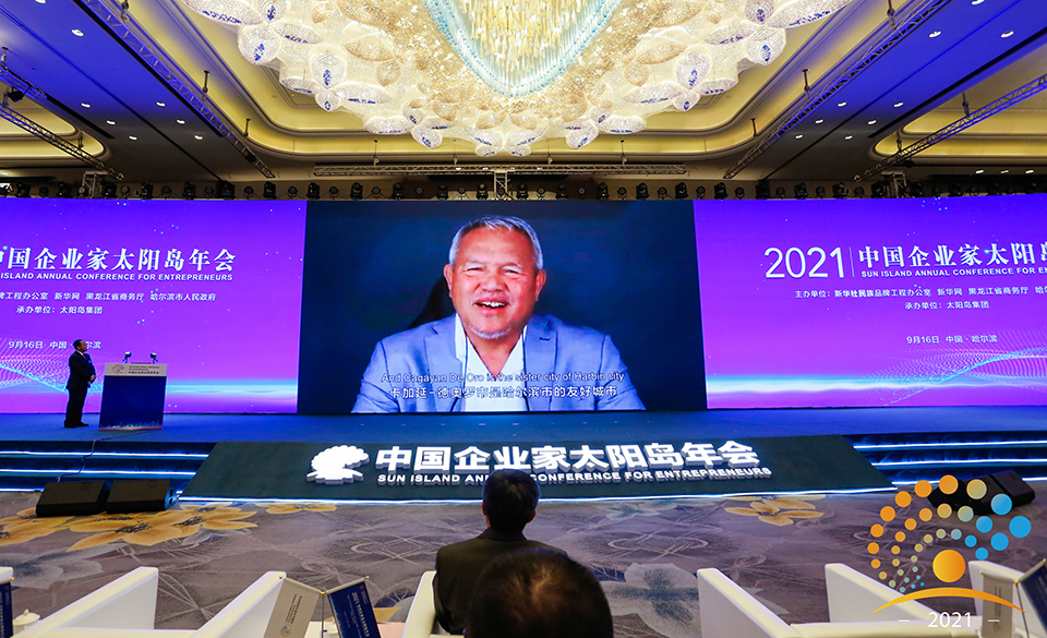 9月16日,2021中国企业家太阳岛年会在哈尔滨市开幕,年会将围绕奋进“十四五”开创新格局,举办主旨演讲、主题对话、名优商品展、项目考察签约等活动。