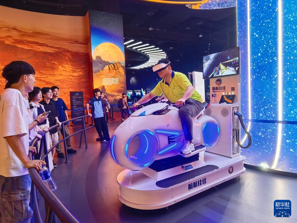 7月5日下午,参加夏令营活动的台湾青年在珠海太空中心体验互动项目。新华社记者 许晓静 摄
