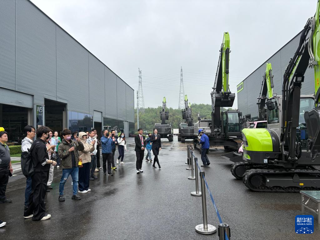 4月15日,嘉宾在湖南长沙中联重科股份有限公司参观。新华社发(陈思敏 摄)