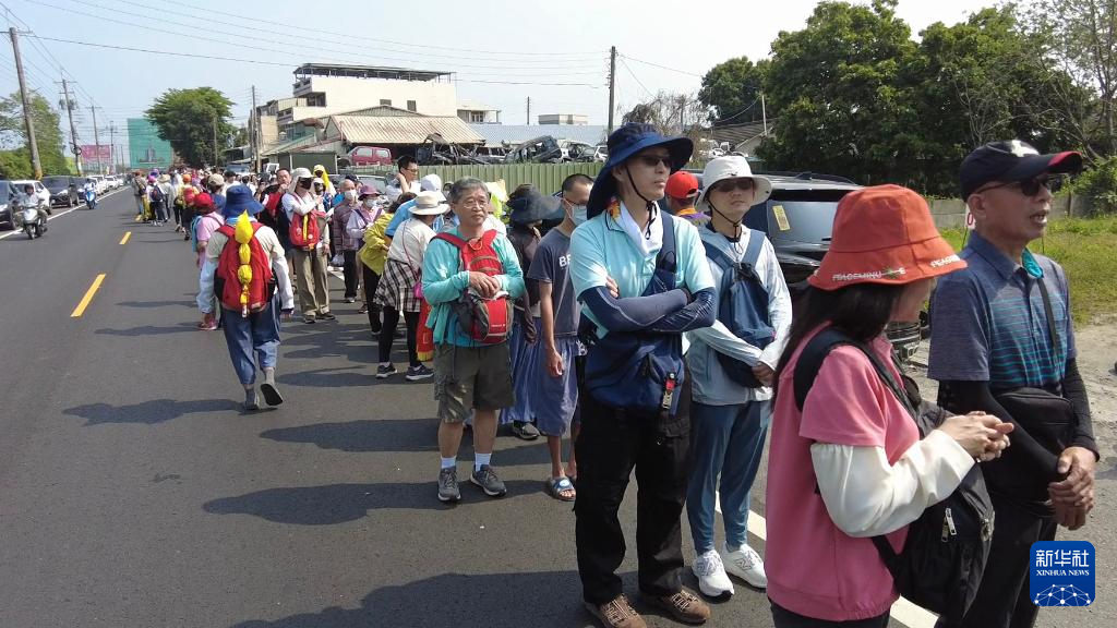 记者观察到,今年绕境进香队伍中有不少年轻人。“凉伞组”成员林劲呈今年27岁,来自台中,从21岁就开始参加妈祖绕境。“我们有三个小组,每组八九个人,一组走两三个小时就换另一组。除了凉伞,我们还负责令旗和马头锣。”他说,只要体力允许,以后会一直参与下去。