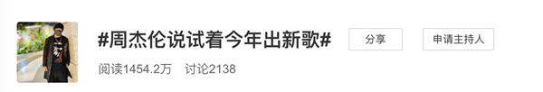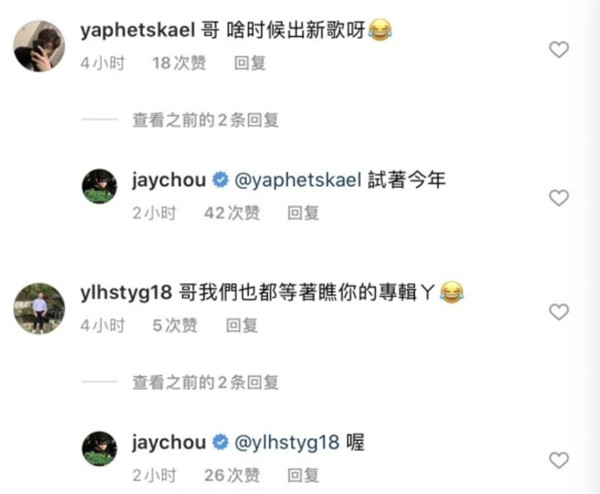 俗话说,字越少,事越大!周杰伦在社交平台上晒衣服上有“走着瞧”字样的新造型,评论里直接提问“啥时候出新专辑”,周杰伦明确表示“试着今年”!区区四字回复,竟瞬间引爆千万网友!