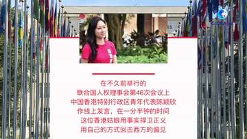 在不久前举行的联合国人权理事会第46次会议上,中国香港特别行政区青年代表陈颖欣作线上发言。面对镜头,她眼神中透露着自信,措辞中饱含着坚定。“我一定要把事情的真相告诉西方世界!”在一分半钟的时间里,这位香港姑娘用事实捍卫正义,用自己的方式回击西方的偏见。