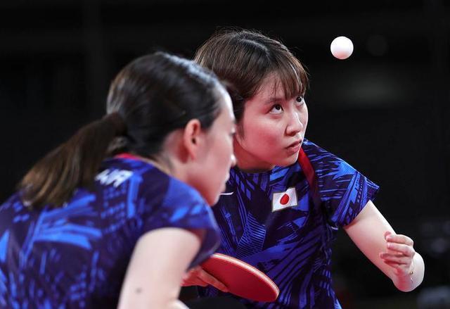 8月5日,日本队选手石川佳纯/平野美宇(右)在比赛中。当日,在东京奥运会乒乓球女子团体决赛中,中国队对阵日本队。新华社记者 王东震 摄