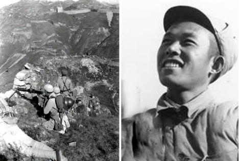 右图为抗日战争时期的雷烨。左图为雷烨拍摄的照片——子弟兵战斗在喜峰口。新华社发