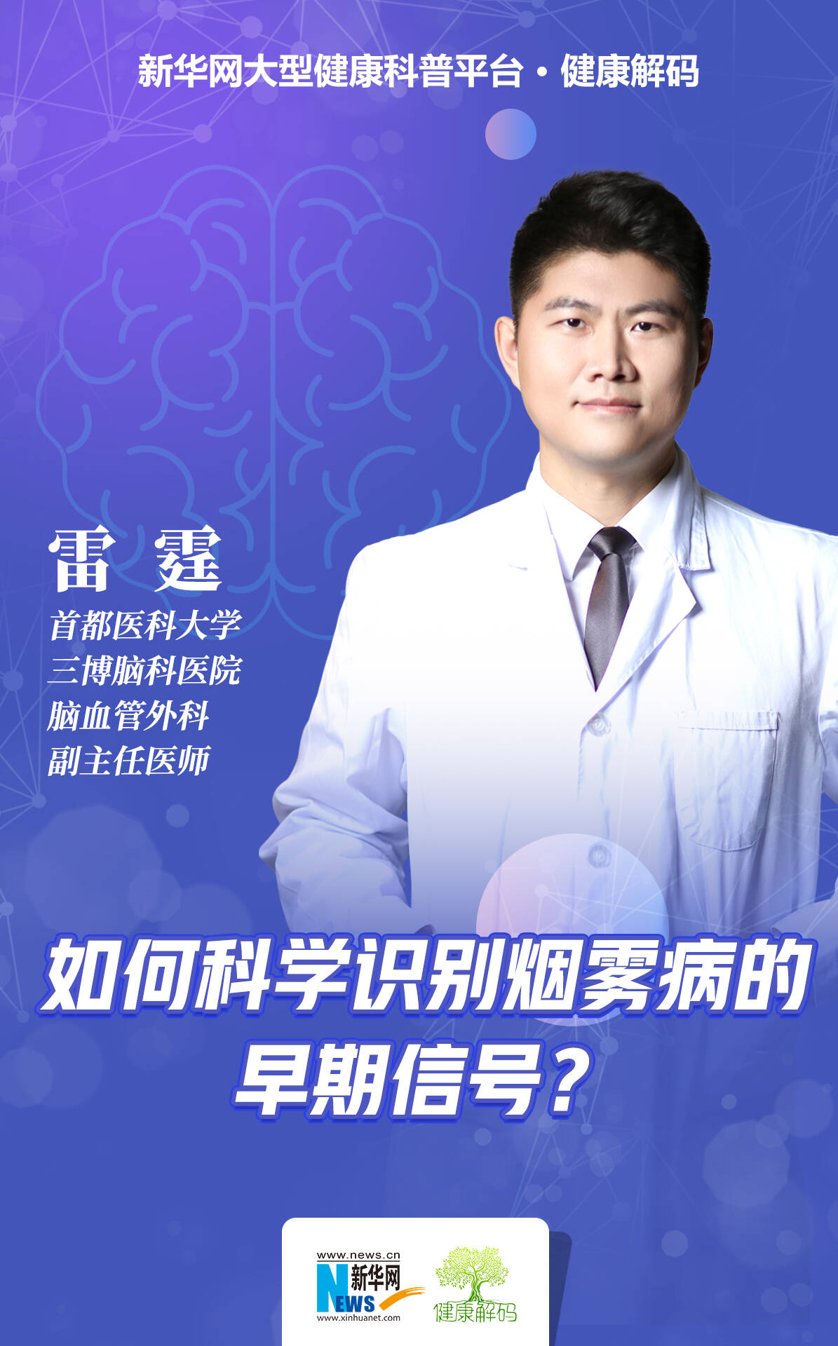 首都医科大学三博脑科医院脑血管外科科研副主任、副主任医师、医学博士雷霆做客新华网《健康解码》栏目