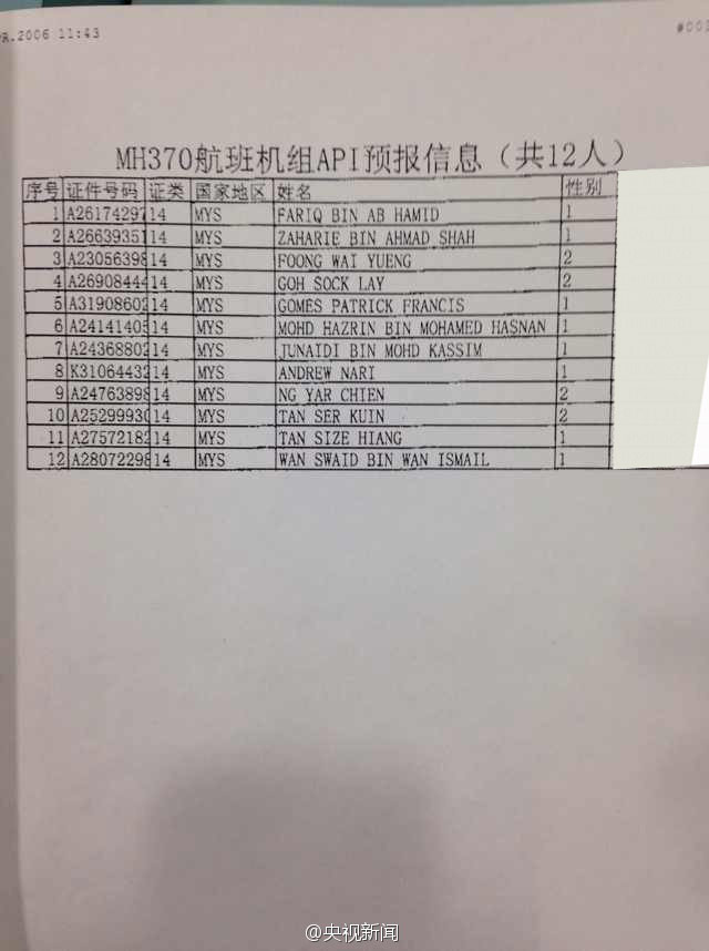 MH370航班乘客名单公布
