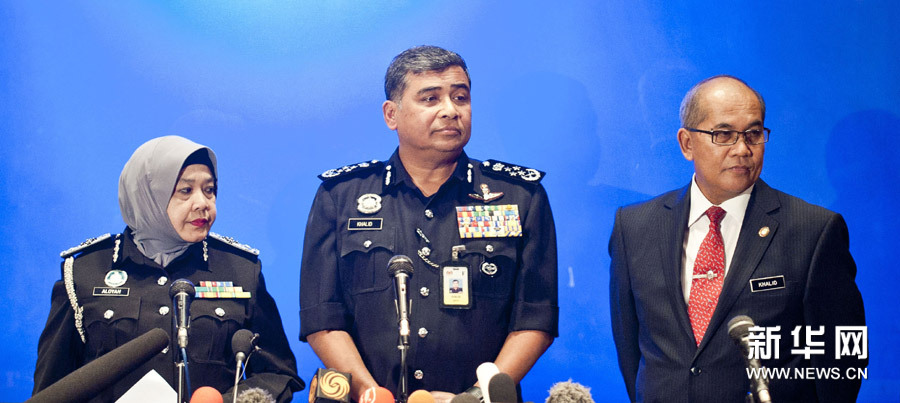 马来西亚警察总长哈立德·阿布·巴卡尔11日在新闻发布会上说,已经确认冒用他人护照登上马航失联客机的一名乘客为伊朗籍男子,另一名冒名乘客的身份还不能确认。新华社记者何靖嘉摄