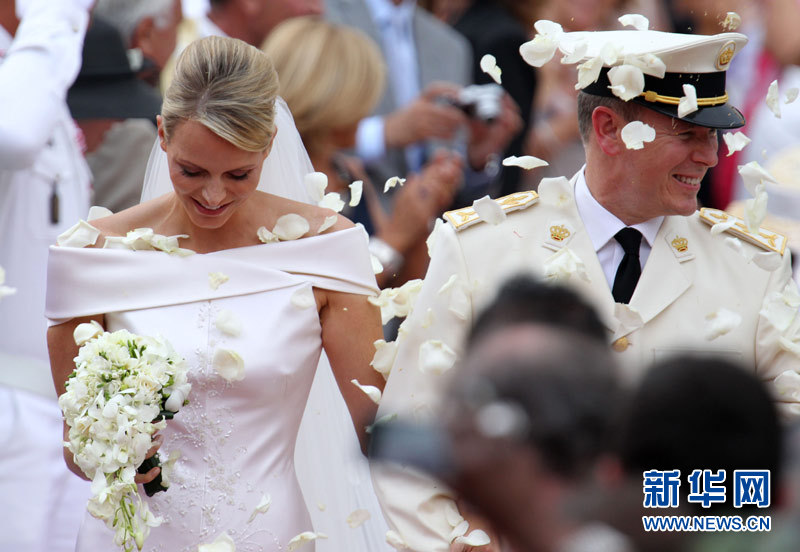 资料图片:2011年7月2日,摩纳哥亲王阿尔贝二世与查伦·维特施托克王妃在摩纳哥王宫广场举行盛大宗教婚礼。欧洲王室成员、国家元首、时尚界和体育界人士等4300多名宾客见证这一历史时刻。新华社记者高静摄